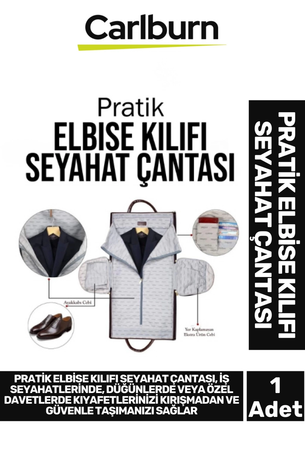 Pratik elbise kılıfı seyahat çantası, iş seyahatlerinde, düğünlerde veya özel davetlerde kıyafetlerinizi kırışmadan ve güvenle taşımanızı sağlar.; Akıllı tasarımı sayesinde hem elbise kılıfı hem de seyahat çantası işlevi sunar.; Geniş iç hacmi ile takım elbise, gömlek, elbise ve ayakkabılarınızı düzenli şekilde taşıyabilir, yan ceplerinde yer alan ekstra bölmelerle küçük eşyalarınızı da kolayca organize edebilirsiniz.; Çanta, dayanıklı malzemesi ile uzun ömürlü kullanım sağlarken, katlanabilir yapısı sayesinde kompakt hale gelerek yerden tasarruf etmenize yardımcı olur.; Ayakkabı bölmesi ve yer kaplamayan ekstra ürün cepleri ile işlevsellik sunar.; Tekerlekli valizlerin üzerine sabitlenebilen arka kayış detayı, seyahatlerde kolay taşıma imkânı verir.; Modern tasarımı ve fonksiyonel yapısı ile bu elbise kılıfı seyahat çantası, özellikle iş insanları, sık seyahat edenler ve özel günlerinde şıklığından ödün vermek istemeyenler için ideal bir tercihtir.;