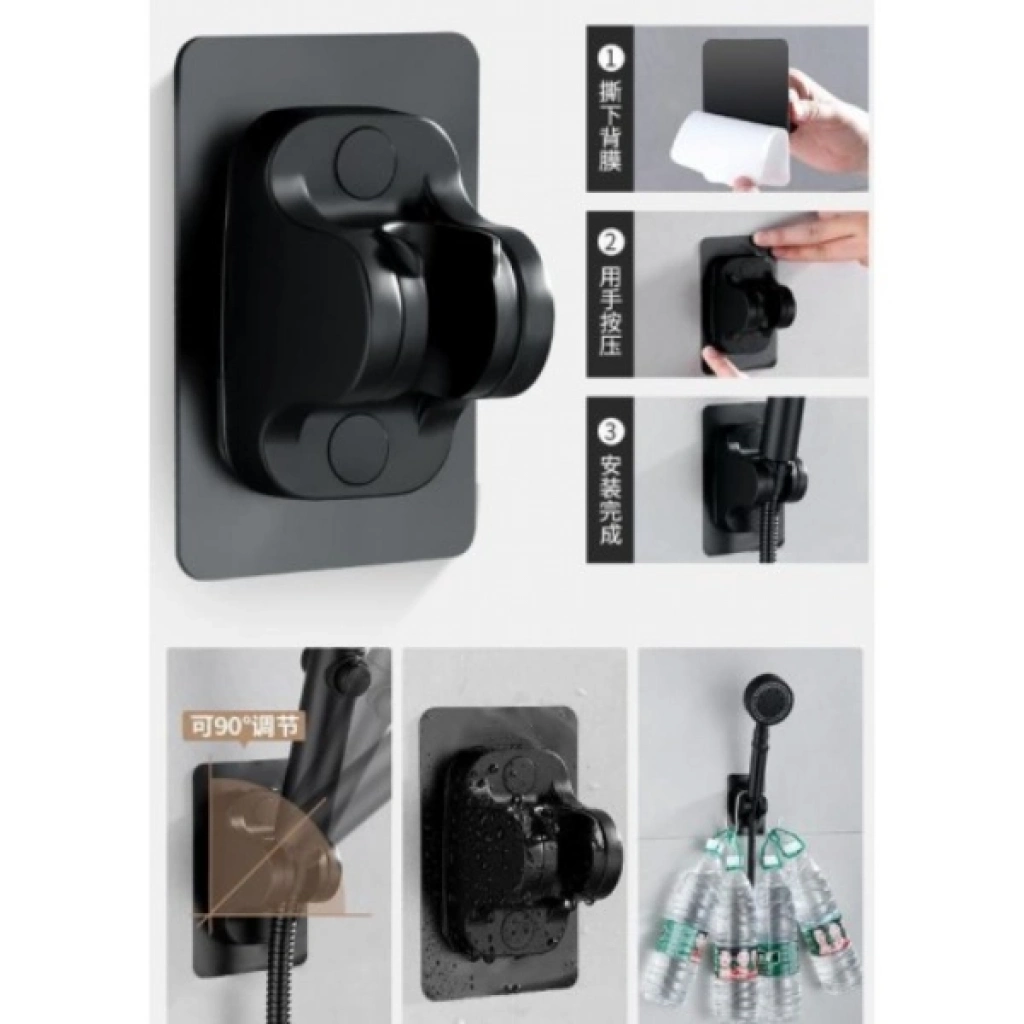 Özel Üretim Banyo Modern Ayarlı Kolay Montaj Konfor Siyah Yapışkanlı Duş Başlığı Tutucu Ayarlı Siyah