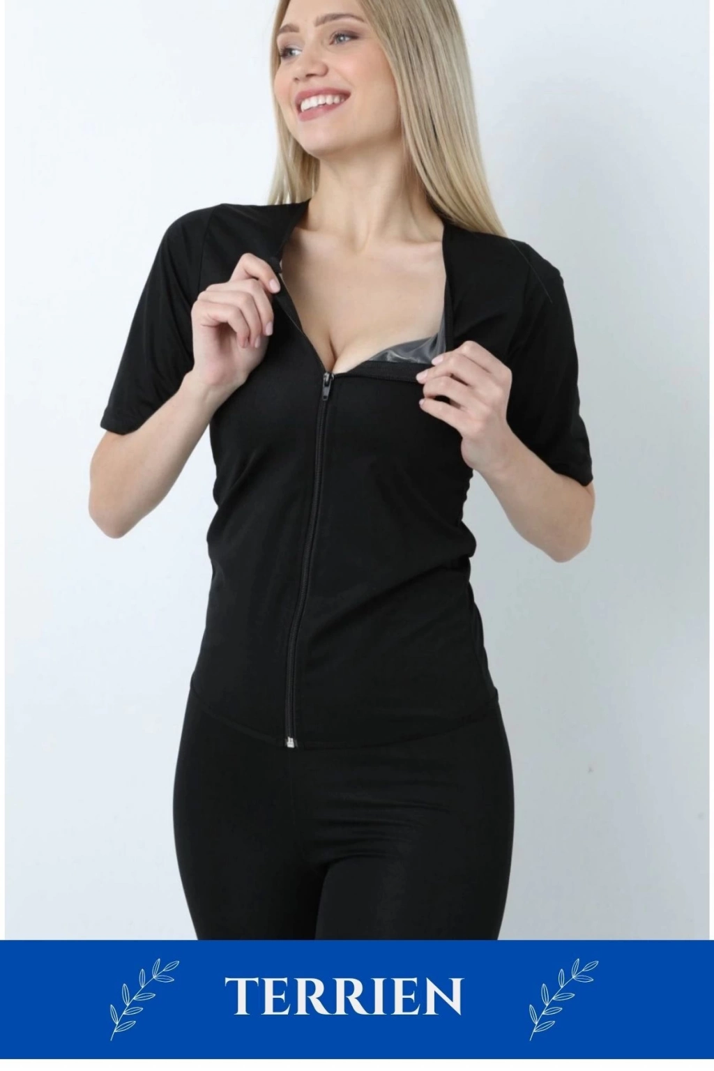 Yeni Seri Toparlayıcı Sıkılaştırıcı Şekillendirici Terleme Kadın Kısa Kollu Fermuarlı Sauna Takım