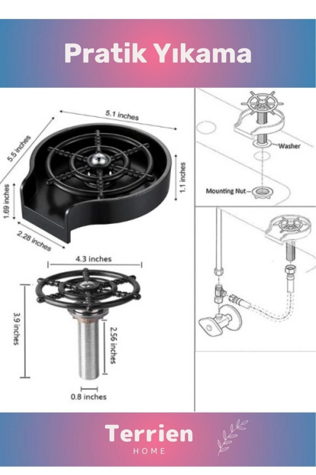 Yüksek Basınçlı Otomatik Bardak Yıkama Aparatı Kupa Durulayıcı Kolay Pratik Kurulum
